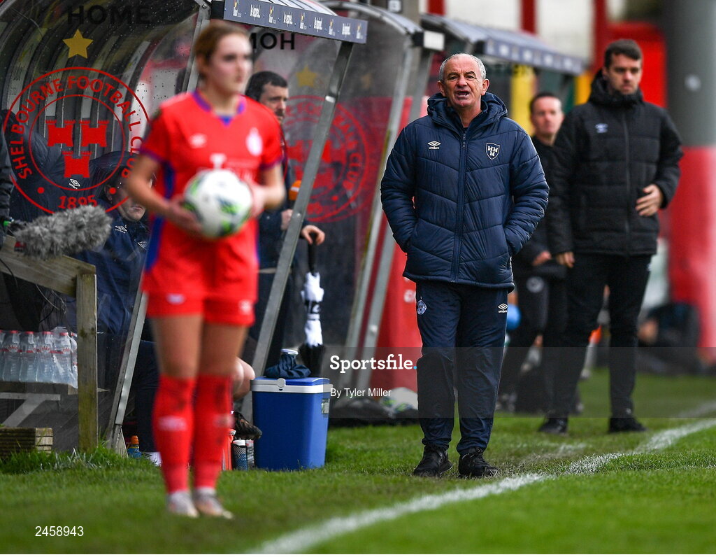18 March 2023; Shelbourne manager Noel King issues instructions during the SSE Airtricity Women's Premier Division match between Shelbourne and Shamrock Rovers at Tolka Park in Dublin. Photo by Tyler Miller/Sportsfile