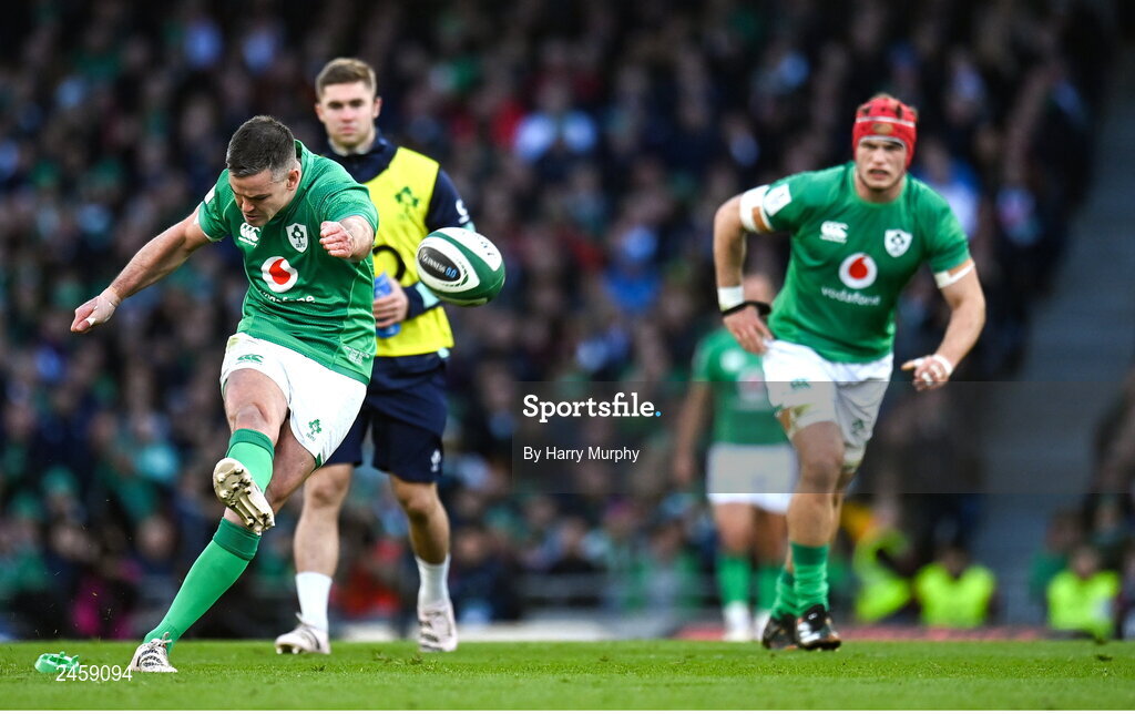 18 March 2023; Jonathan Sexton of Ireland converts a penalty to become the all time Six Nations points scorer during the Guinness Six Nations Rugby Championship match between Ireland and England at Aviva Stadium in Dublin. Photo by Harry Murphy/Sportsfile