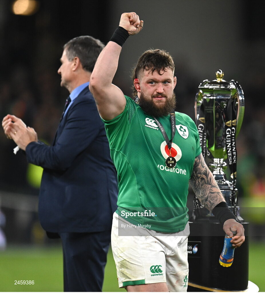 18 March 2023; Andrew Porter of Ireland celebrates after the Guinness Six Nations Rugby Championship match between Ireland and England at Aviva Stadium in Dublin. Photo by Harry Murphy/Sportsfile