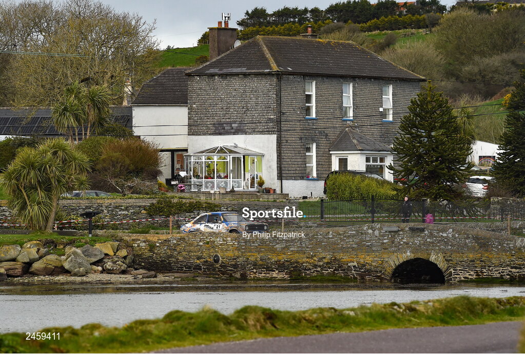 19 March 2023; Gary Kiernan and Cathal Mulgrew in their Ford Escort Mk2 during The Clonakilty Park Hotel West Cork Rally Round 2 of the Irish Tarmac Rally Championship in Clonakilty, Cork. Photo by Philip Fitzpatrick/Sportsfile