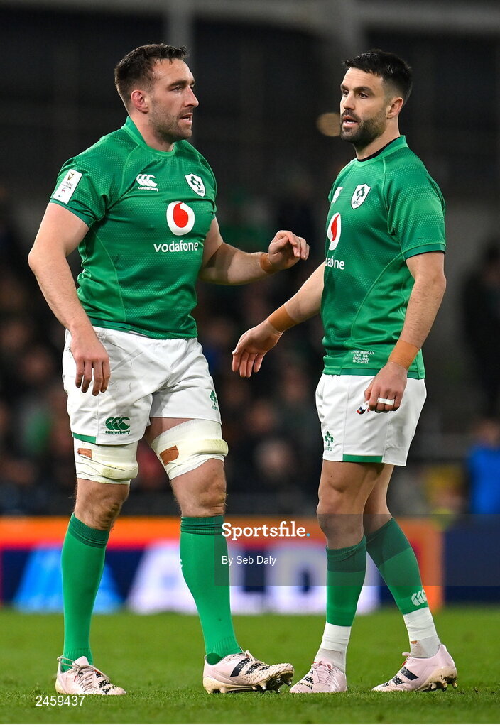 18 March 2023; Jack Conan, left, and Conor Murray of Ireland during the Guinness Six Nations Rugby Championship match between Ireland and England at the Aviva Stadium in Dublin. Photo by Seb Daly/Sportsfile