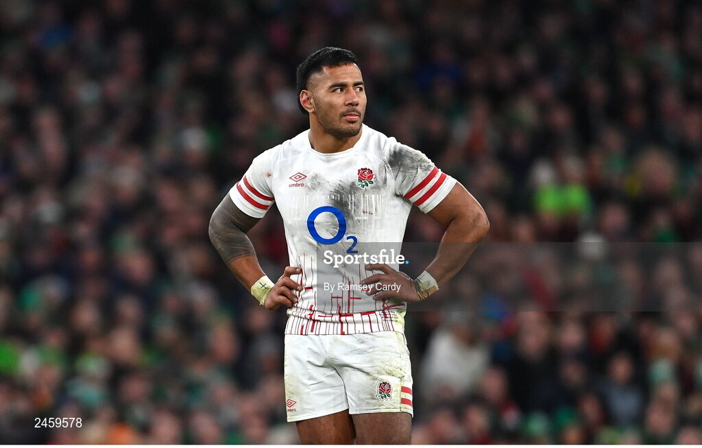 18 March 2023; Manu Tuilagi of England during the Guinness Six Nations Rugby Championship match between Ireland and England at Aviva Stadium in Dublin. Photo by Ramsey Cardy/Sportsfile