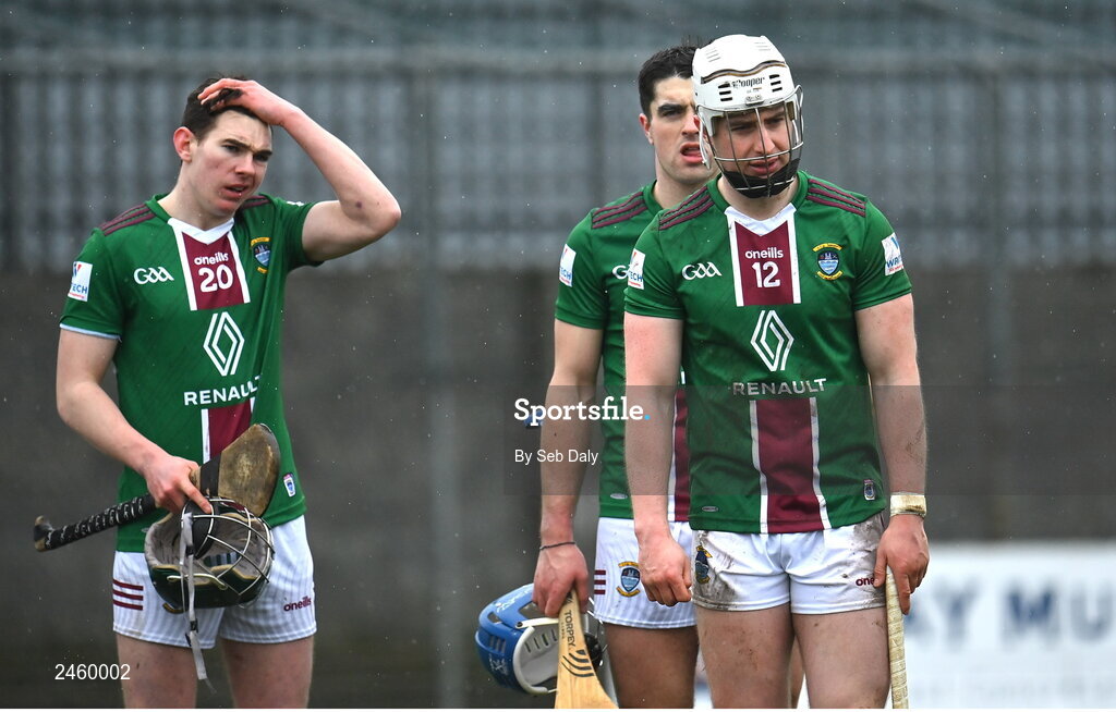 19 March 2023; Eoin Keyes, right, and Adam Ennis of Westmeath, left, after their side's defeat in the Allianz Hurling League Division 1 Group A match between Westmeath and Galway at TEG Cusack Park in Mullingar, Westmeath. Photo by Seb Daly/Sportsfile