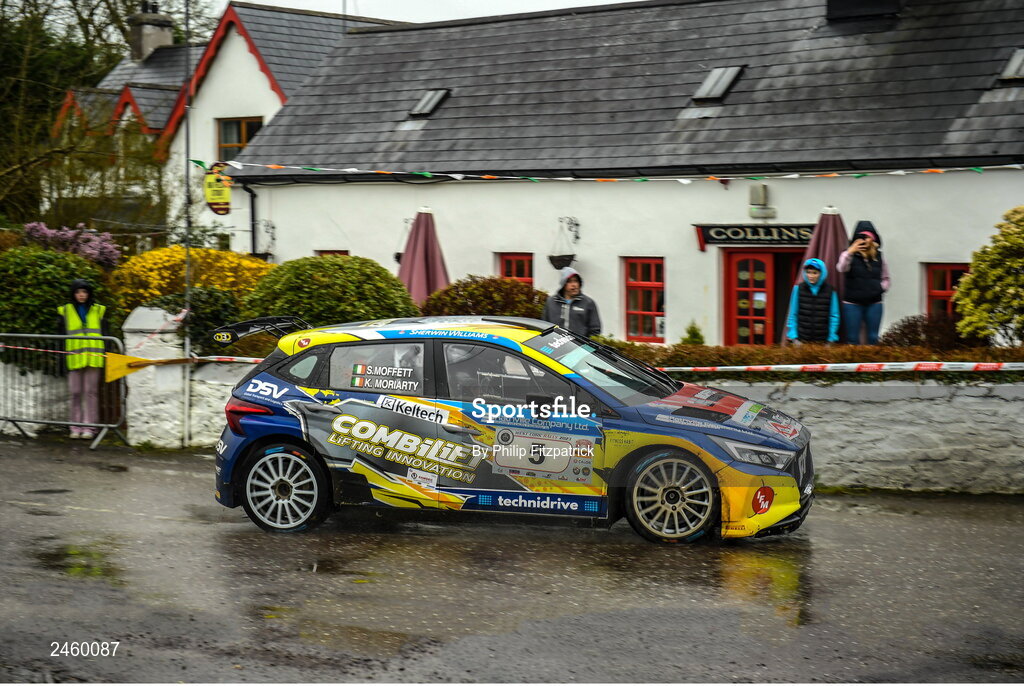 19 March 2023; Sam Moffett and Keith Moriarty in their Hyundai i20 N Rally during The Clonakilty Park Hotel West Cork Rally Round 2 of the Irish Tarmac Rally Championship in Clonakilty, Cork. Photo by Philip Fitzpatrick/Sportsfile