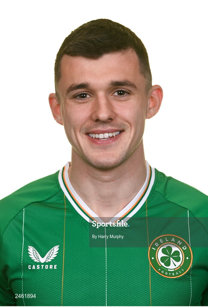 19 March 2023; Jason Knight poses for a portrait during a Republic of Ireland squad portrait session at Castleknock Hotel in Dublin. Photo by Harry Murphy/Sportsfile