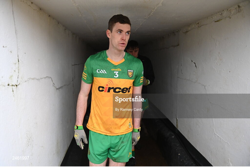 19 March 2023; Caolan Ward of Donegal makes his way out of the tunnel for the second half of the Allianz Football League Division 1 match between Donegal and Mayo at MacCumhaill Park in Ballybofey, Donegal. Photo by Ramsey Cardy/Sportsfile