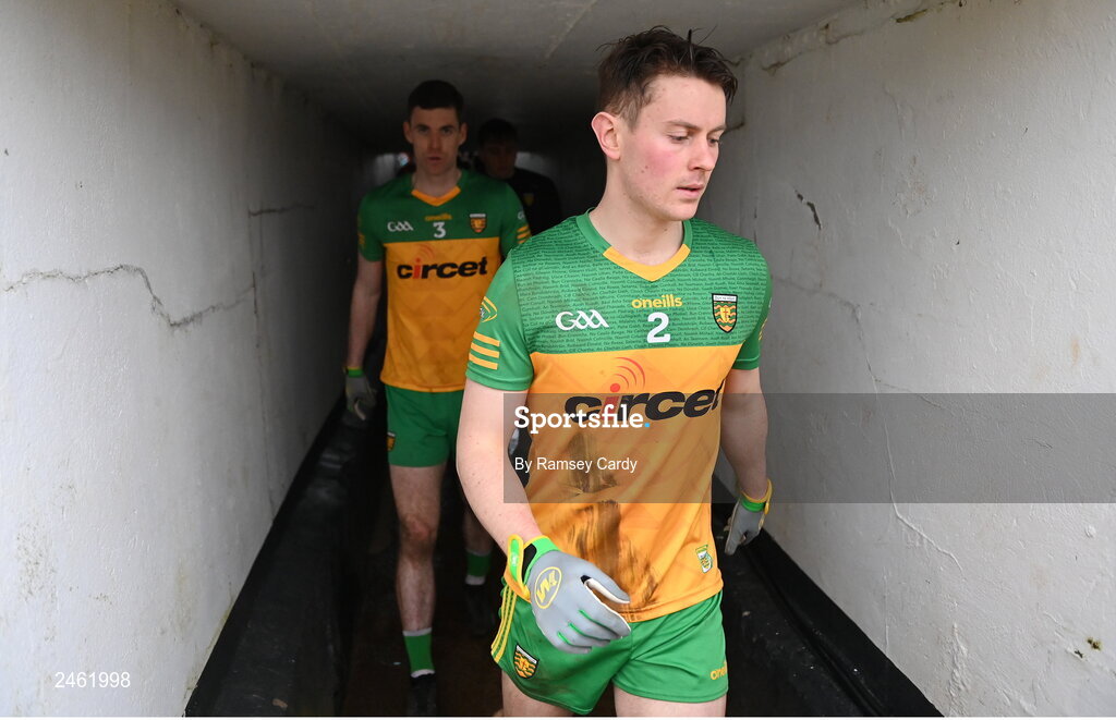 19 March 2023; Mark Curran of Donegal makes his way out of the tunnel for the second half of the Allianz Football League Division 1 match between Donegal and Mayo at MacCumhaill Park in Ballybofey, Donegal. Photo by Ramsey Cardy/Sportsfile