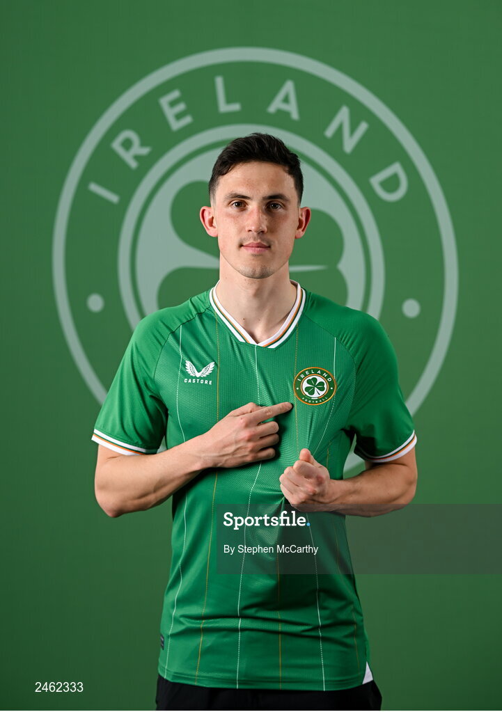 19 March 2023; Jamie McGrath poses for a portrait during a Republic of Ireland squad portrait session at Castleknock Hotel in Dublin. Photo by Stephen McCarthy/Sportsfile