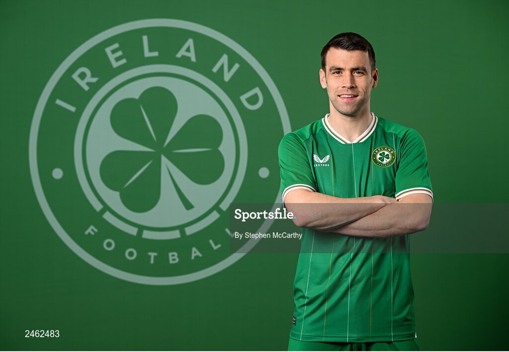 19 March 2023; Seamus Coleman poses for a portrait during a Republic of Ireland squad portrait session at Castleknock Hotel in Dublin. Photo by Stephen McCarthy/Sportsfile