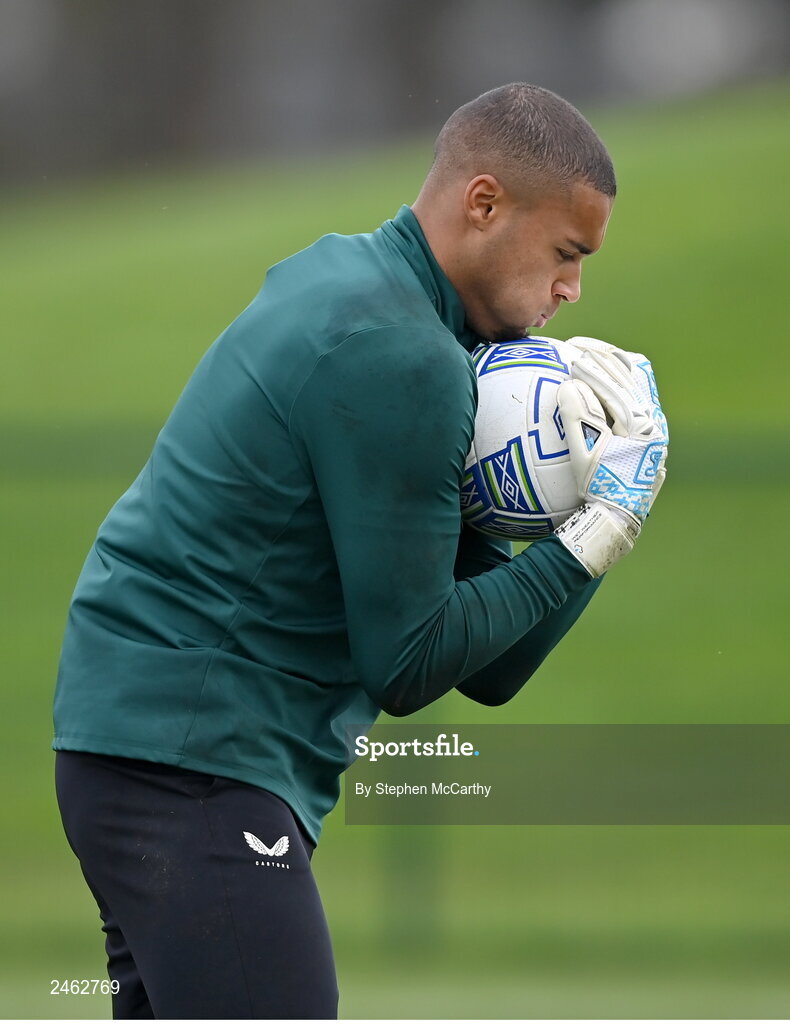 21 March 2023; Goalkeeper Gavin Bazunu during a Republic of Ireland training session at the FAI National Training Centre in Abbotstown, Dublin. Photo by Stephen McCarthy/Sportsfile