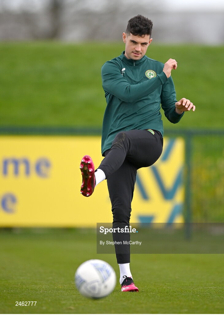 21 March 2023; John Egan during a Republic of Ireland training session at the FAI National Training Centre in Abbotstown, Dublin. Photo by Stephen McCarthy/Sportsfile
