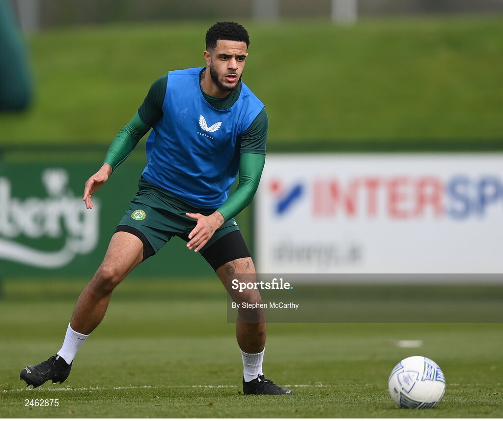 21 March 2023; Andrew Omobamidele during a Republic of Ireland training session at the FAI National Training Centre in Abbotstown, Dublin. Photo by Stephen McCarthy/Sportsfile