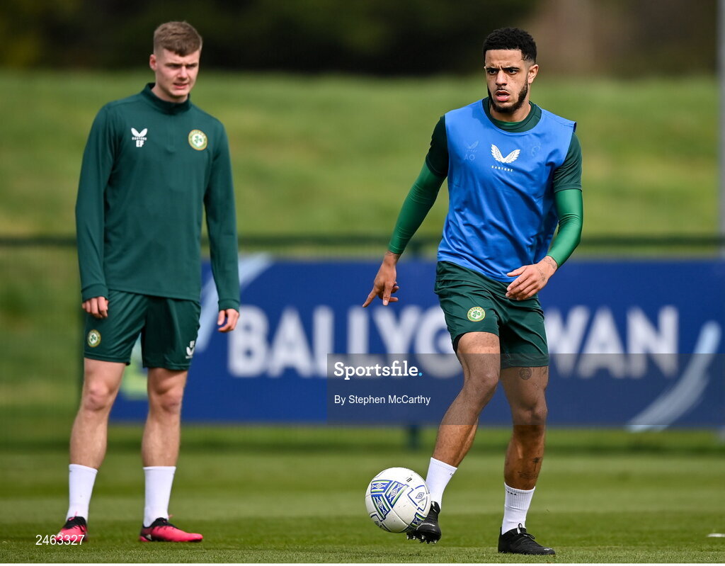 21 March 2023; Andrew Omobamidele during a Republic of Ireland training session at the FAI National Training Centre in Abbotstown, Dublin. Photo by Stephen McCarthy/Sportsfile