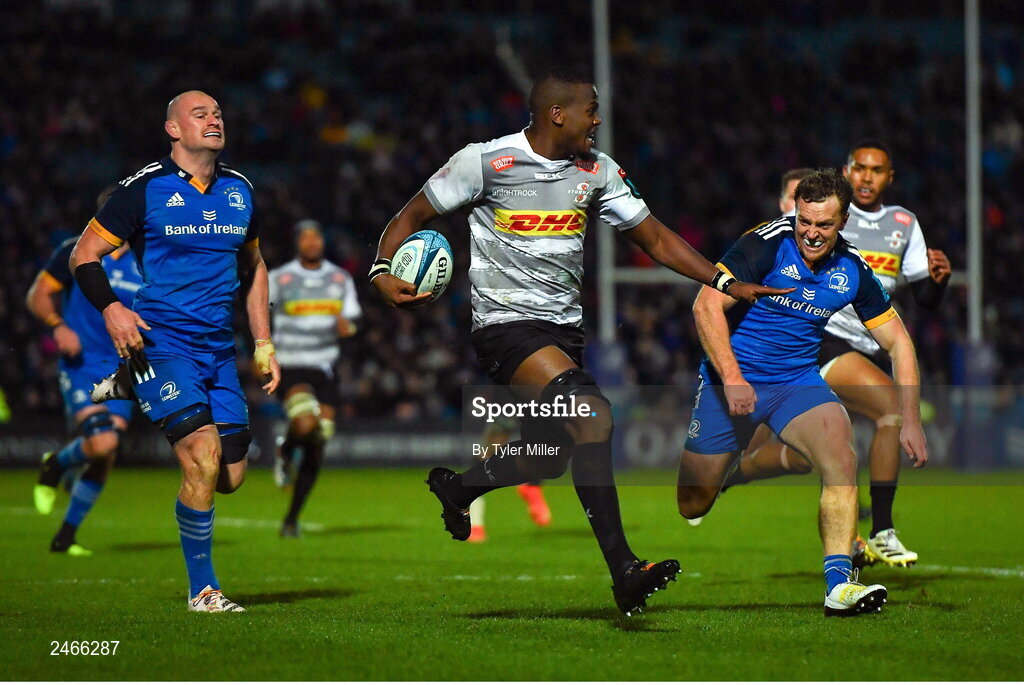 24 March 2023; Hacjivah Dayimani of DHL Stormers in action against Liam Turner of Leinster during the United Rugby Championship match between Leinster and DHL Stormers at the RDS Arena in Dublin. Photo by Tyler Miller/Sportsfile