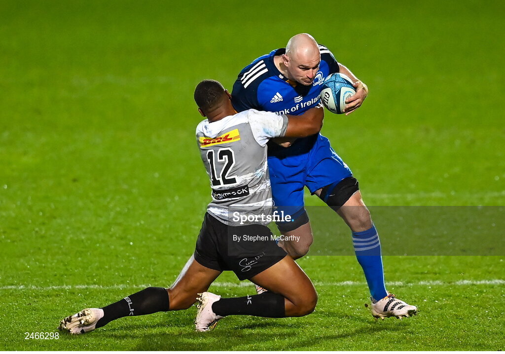 24 March 2023; Rhys Ruddock of Leinster is tackled by Damian Willemse of DHL Stormers during the United Rugby Championship match between Leinster and DHL Stormers at the RDS Arena in Dublin. Photo by Stephen McCarthy/Sportsfile