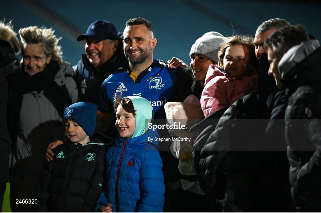 24 March 2023; Dave Kearney of Leinster and family after the United Rugby Championship match between Leinster and DHL Stormers at the RDS Arena in Dublin. Photo by Stephen McCarthy/Sportsfile