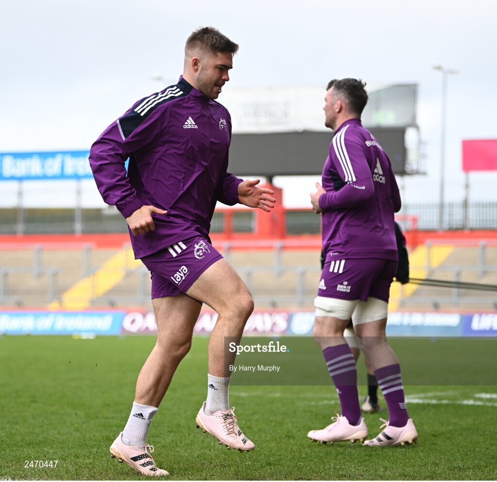 28 March 2023; Jack Crowley during a Munster Rugby squad training session at Thomond Park in Limerick. Photo by Harry Murphy/Sportsfile