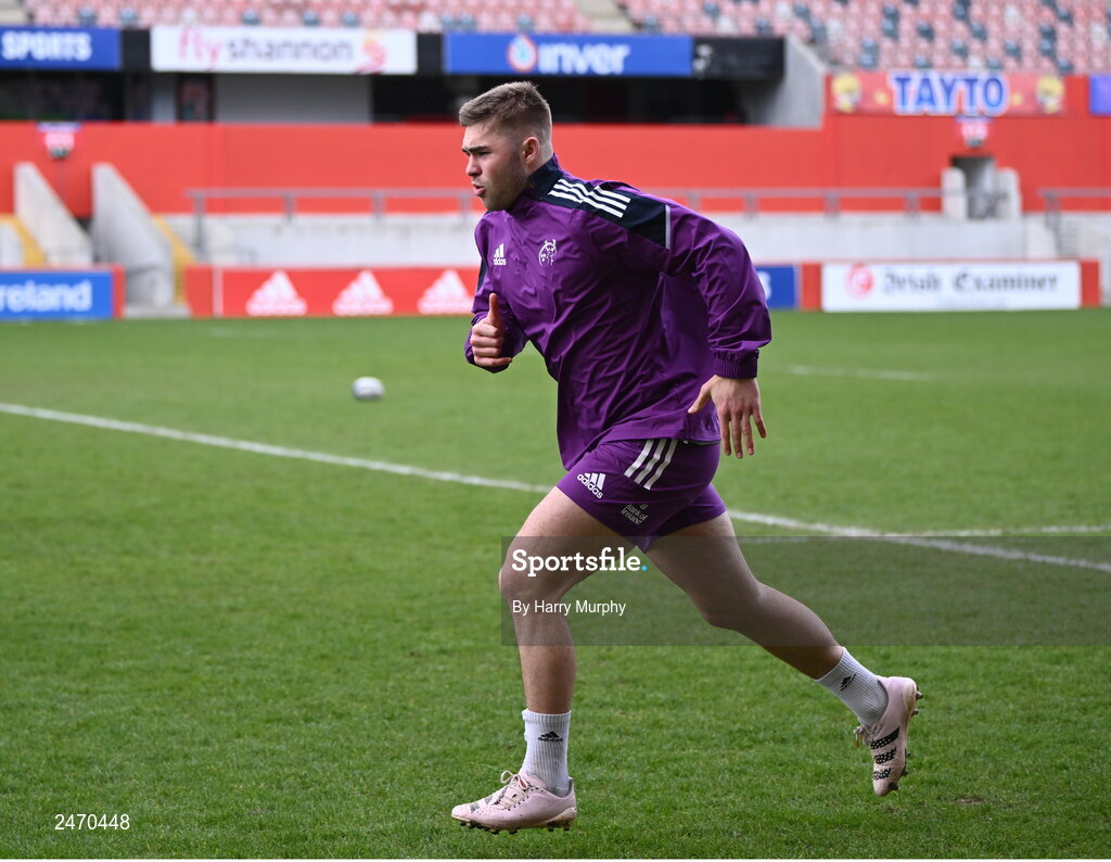 28 March 2023; Jack Crowley during a Munster Rugby squad training session at Thomond Park in Limerick. Photo by Harry Murphy/Sportsfile