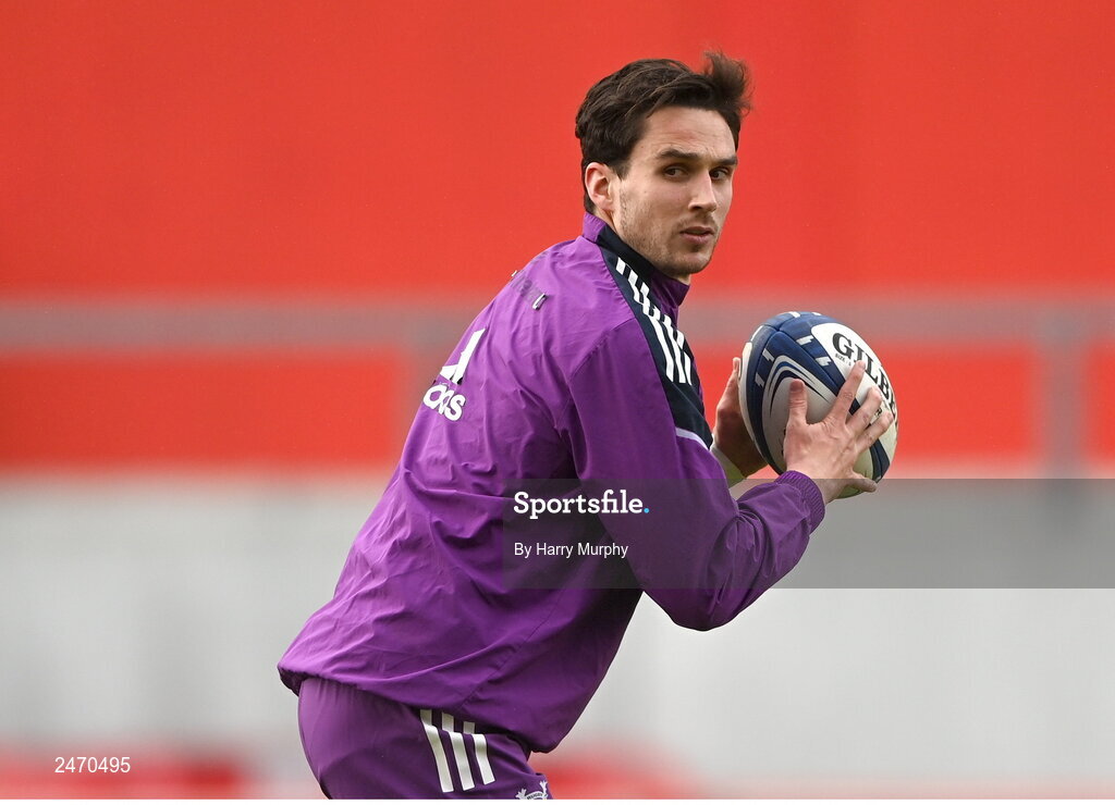 28 March 2023; Joey Carbery during a Munster Rugby squad training session at Thomond Park in Limerick. Photo by Harry Murphy/Sportsfile
