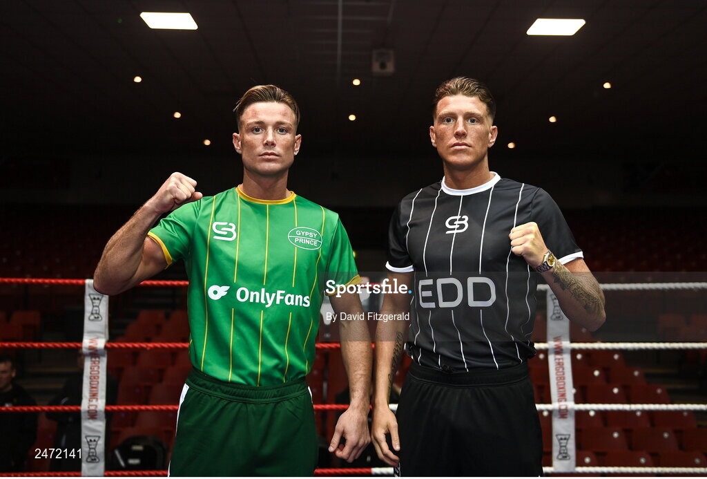 31 March 2023; Brothers Paddy, left, and Edward Donovan after weighing in ahead of their boxing bouts on Saturday night, April 1st, at National Stadium in Dublin. Photo by David Fitzgerald/Sportsfile