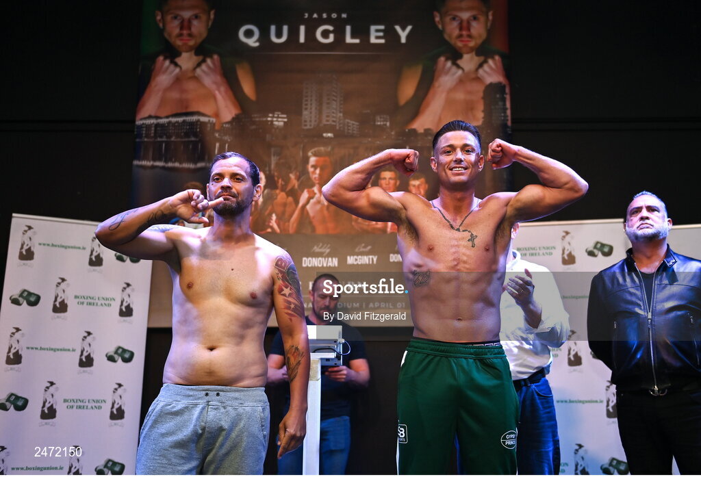31 March 2023; Paddy Donovan, right, and Luis da Silva after weighing in at the National Stadium in Dublin, ahead of their Welterweight bout on Saturday night, April 1st, at National Stadium in Dublin. Photo by David Fitzgerald/Sportsfile
