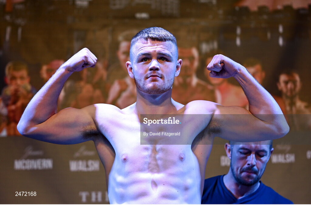 31 March 2023; Brett McGinty weighs in at the National Stadium in Dublin, ahead of his bout on Saturday night, April 1st, at National Stadium in Dublin. Photo by David Fitzgerald/Sportsfile