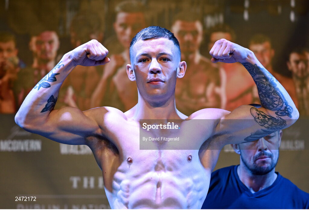 31 March 2023; Senan Kelly weighs in at the National Stadium in Dublin, ahead of his bout on Saturday night, April 1st, at National Stadium in Dublin. Photo by David Fitzgerald/Sportsfile