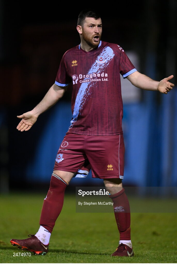 16 March 2023; Ryan Brennan of Drogheda United during the SSE Airtricity Men's Premier Division match between Drogheda United and Dundalk at Weavers Park in Drogheda, Louth. Photo by Stephen McCarthy/Sportsfile