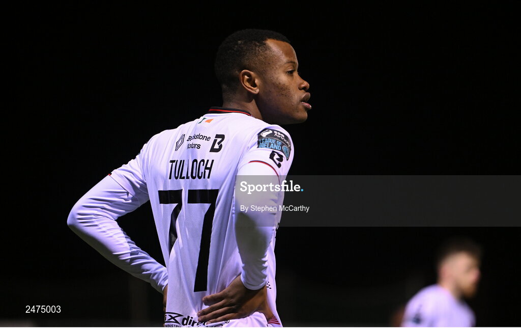 16 March 2023; Rayhaan Tulloch of Dundalk during the SSE Airtricity Men's Premier Division match between Drogheda United and Dundalk at Weavers Park in Drogheda, Louth. Photo by Stephen McCarthy/Sportsfile