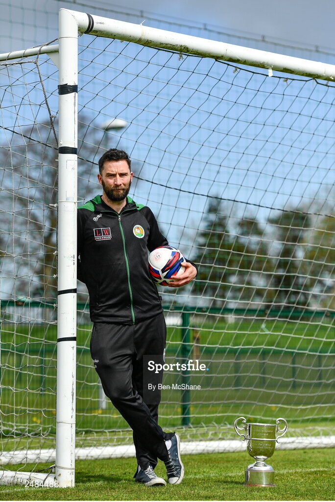 21 April 2023; Cockhill Celtic captain James Bradley during the FAI Intermediate Cup Final media event at FAI HQ in Abbotstown, Dublin. Photo by Ben McShane/Sportsfile