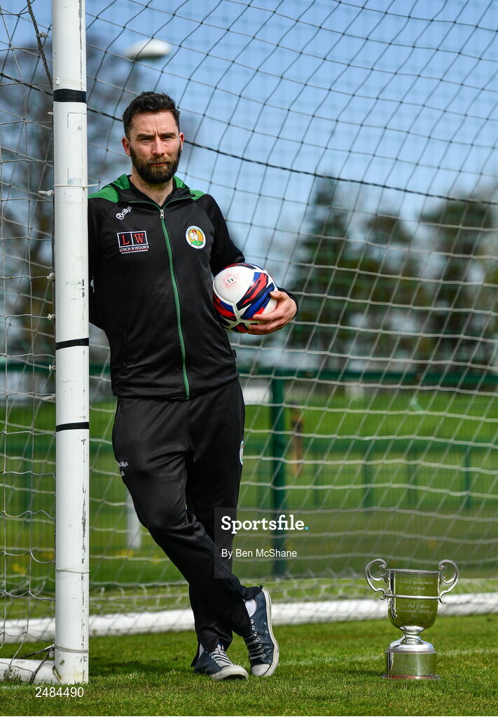 21 April 2023; Cockhill Celtic captain James Bradley during the FAI Intermediate Cup Final media event at FAI HQ in Abbotstown, Dublin. Photo by Ben McShane/Sportsfile