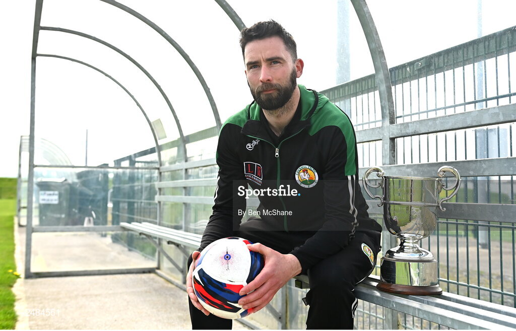 21 April 2023; Cockhill Celtic captain James Bradley during the FAI Intermediate Cup Final media event at FAI HQ in Abbotstown, Dublin. Photo by Ben McShane/Sportsfile