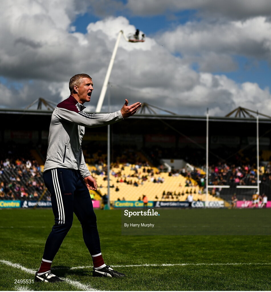 30 April 2023; Galway manager Henry Shefflin encourages his team late in the Leinster GAA Hurling Senior Championship Round 2 match between Kilkenny and Galway at UPMC Nowlan Park in Kilkenny. Photo by Harry Murphy/Sportsfile