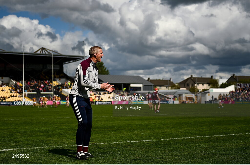 30 April 2023; Galway manager Henry Shefflin encourages his team late in the Leinster GAA Hurling Senior Championship Round 2 match between Kilkenny and Galway at UPMC Nowlan Park in Kilkenny. Photo by Harry Murphy/Sportsfile