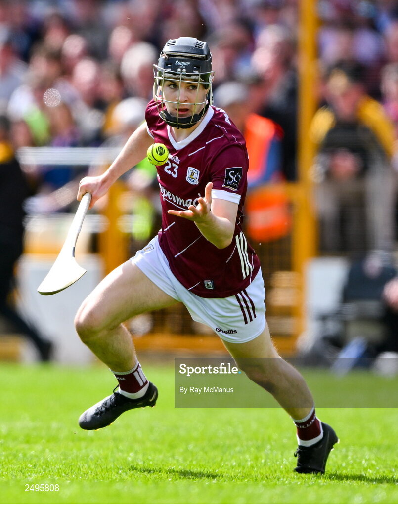 30 April 2023; Liam Collins of Galway during the Leinster GAA Hurling Senior Championship Round 2 match between Kilkenny and Galway at UPMC Nowlan Park in Kilkenny. Photo by Ray McManus/Sportsfile