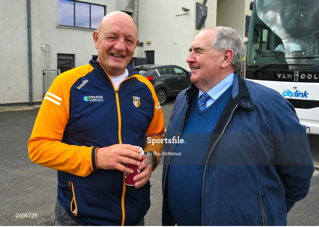 30 April 2023; Terence "Sambo" McNaughton, left, with Ned Quinn, Kilkenny County Finance Committee 2022 Committee Member before the Leinster GAA Hurling Senior Championship Round 2 match between Kilkenny and Galway at UPMC Nowlan Park in Kilkenny. Photo by Ray McManus/Sportsfile