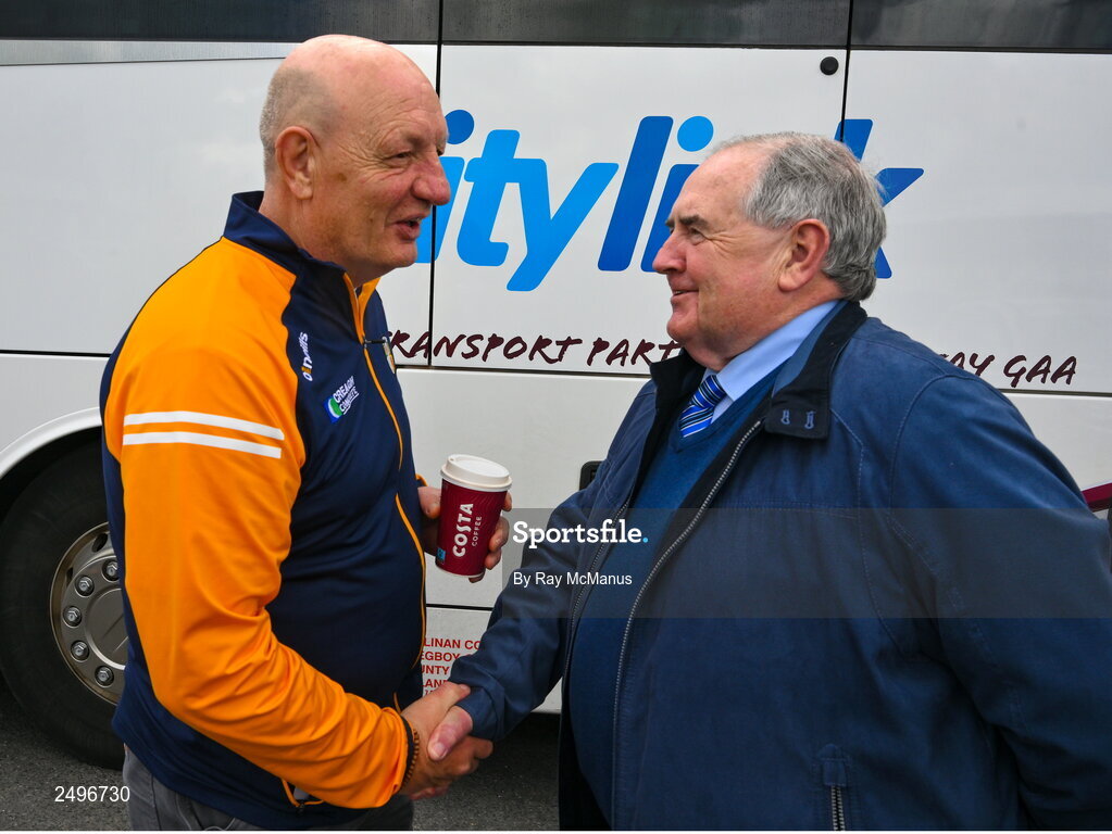 30 April 2023; Terence "Sambo" McNaughton, left, with Ned Quinn, Kilkenny County Finance Committee 2022 Committee Member before the Leinster GAA Hurling Senior Championship Round 2 match between Kilkenny and Galway at UPMC Nowlan Park in Kilkenny. Photo by Ray McManus/Sportsfile