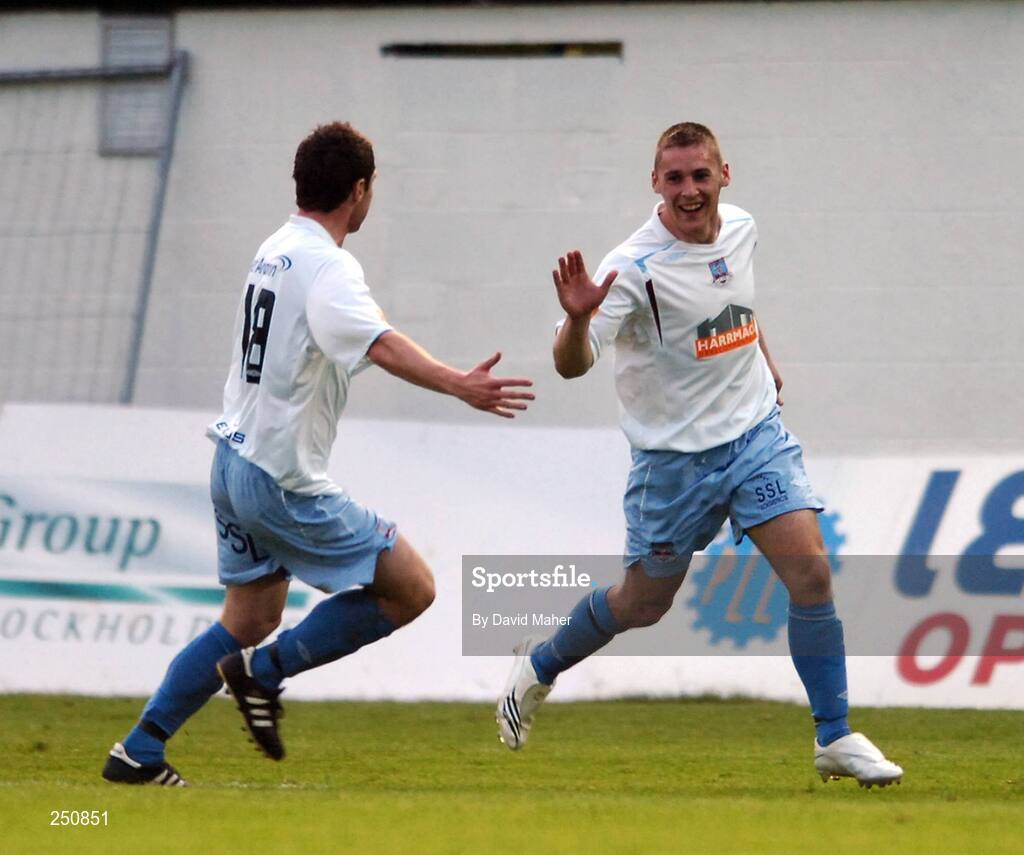 1 June 2007; Derek Glynn, right, Galway United, celebrates after scoring his side's second goal with team-mate John Russell. eircom League of Ireland, Premier Division, St Patrick's Athletic v Galway United, Richmond Park, Dublin. Picture credit: David Maher / SPORTSFILE