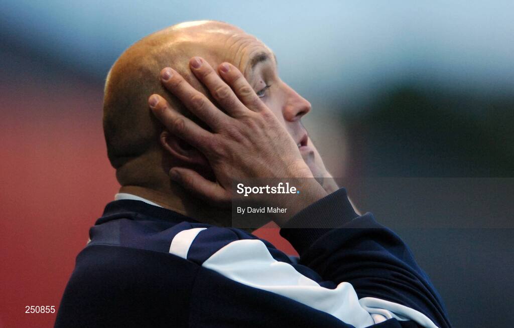 1 June 2007; An anxious St Patrick's Athletic manager, John McDonnell, during the closing stages of the game. eircom League of Ireland, Premier Division, St Patrick's Athletic v Galway United, Richmond Park, Dublin. Picture credit: David Maher / SPORTSFILE
