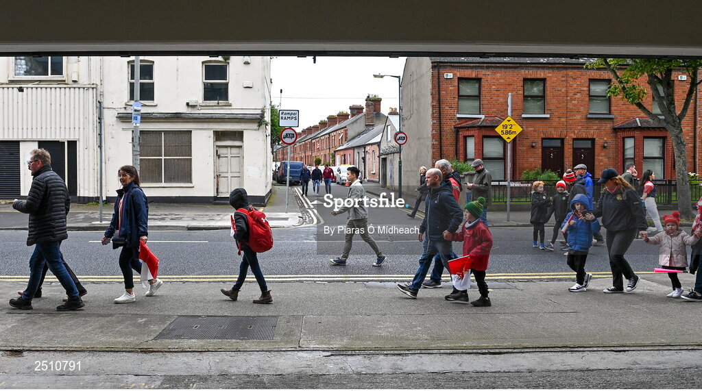 14 May 2023; Spectators outside the ground before the Leinster GAA Football Senior Championship Final match between Dublin and Louth at Croke Park in Dublin. Photo by Piaras Ó Mídheach/Sportsfile