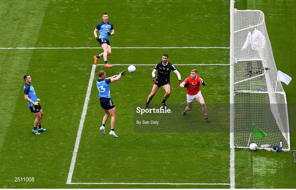 14 May 2023; Paul Mannion of Dublin, 13, scores his side's first goal during the Leinster GAA Football Senior Championship Final match between Dublin and Louth at Croke Park in Dublin. Photo by Seb Daly/Sportsfile