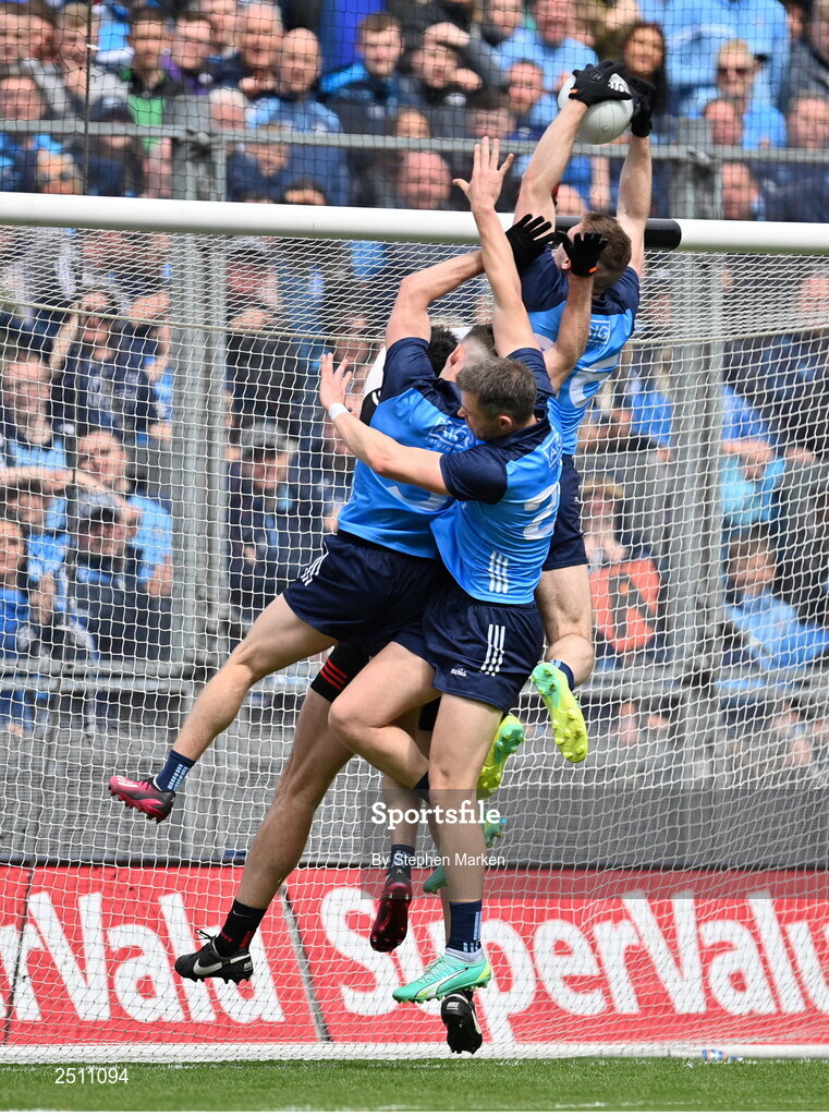 14 May 2023; Paddy Small of Dublin, right on his way to scoring his side's fourth goal during the Leinster GAA Football Senior Championship Final match between Dublin and Louth at Croke Park in Dublin. Photo by Stephen Marken/Sportsfile