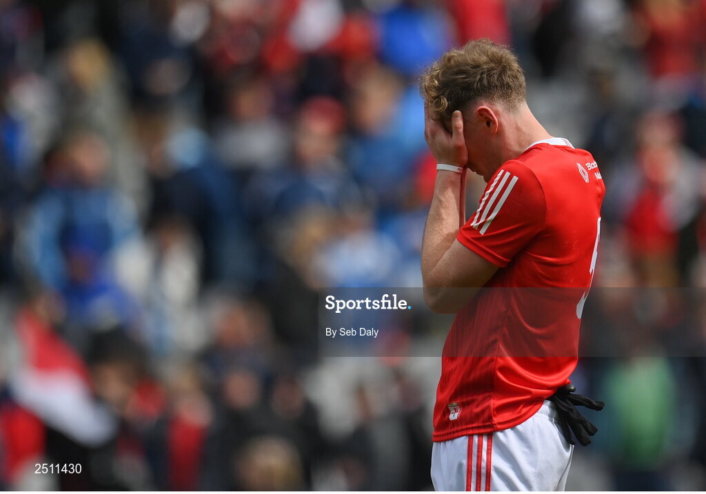14 May 2023; Leonard Grey of Louth after his side's defeat in the Leinster GAA Football Senior Championship Final match between Dublin and Louth at Croke Park in Dublin. Photo by Seb Daly/Sportsfile