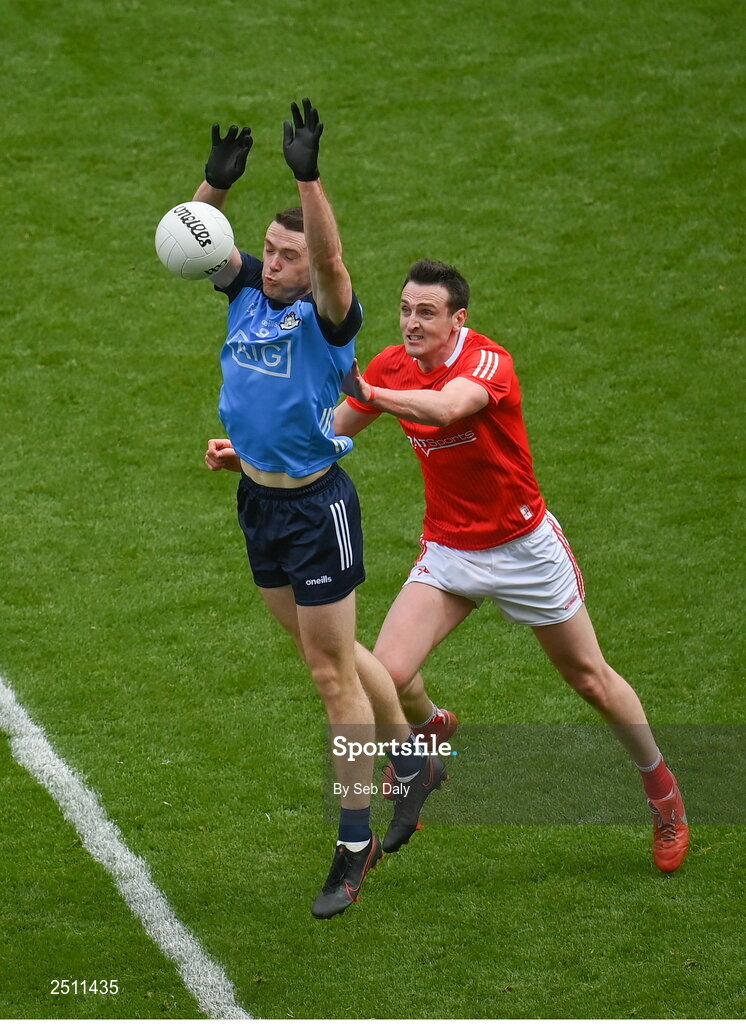 14 May 2023; Brian Fenton of Dublin in action against Tommy Durnin of Louth during the Leinster GAA Football Senior Championship Final match between Dublin and Louth at Croke Park in Dublin. Photo by Seb Daly/Sportsfile