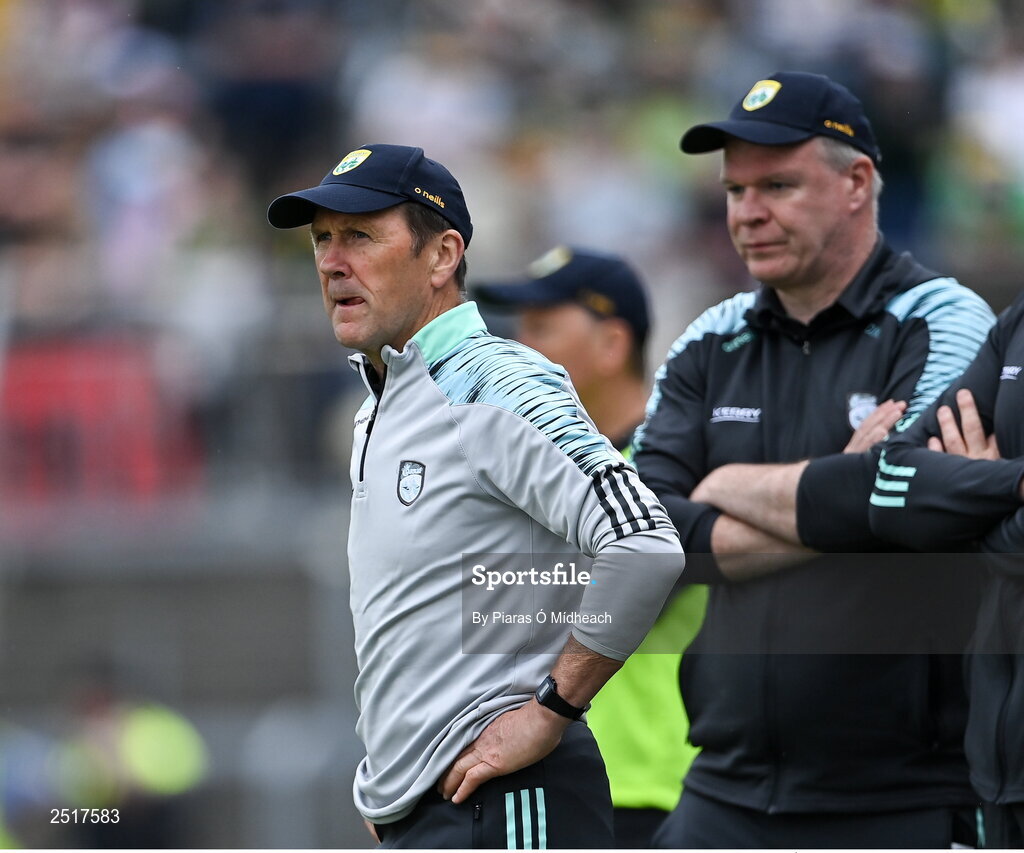 20 May 2023; Kerry manager Jack O'Connor, left, during the GAA Football All-Ireland Senior Championship Round 1 match between Kerry and Mayo at Fitzgerald Stadium in Killarney, Kerry. Photo by Piaras Ó Mídheach/Sportsfile