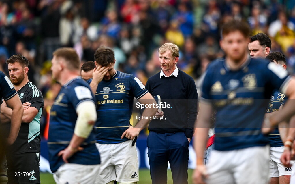 20 May 2023; Leinster head coach Leo Cullen after his side's defeat in the Heineken Champions Cup Final match between Leinster and La Rochelle at Aviva Stadium in Dublin. Photo by Harry Murphy/Sportsfile