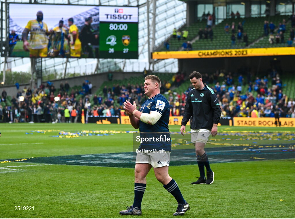 20 May 2023; Tadhg Furlong of Leinster after his side's defeat in the Heineken Champions Cup final match between Leinster and La Rochelle at the Aviva Stadium in Dublin. Photo by Harry Murphy/Sportsfile