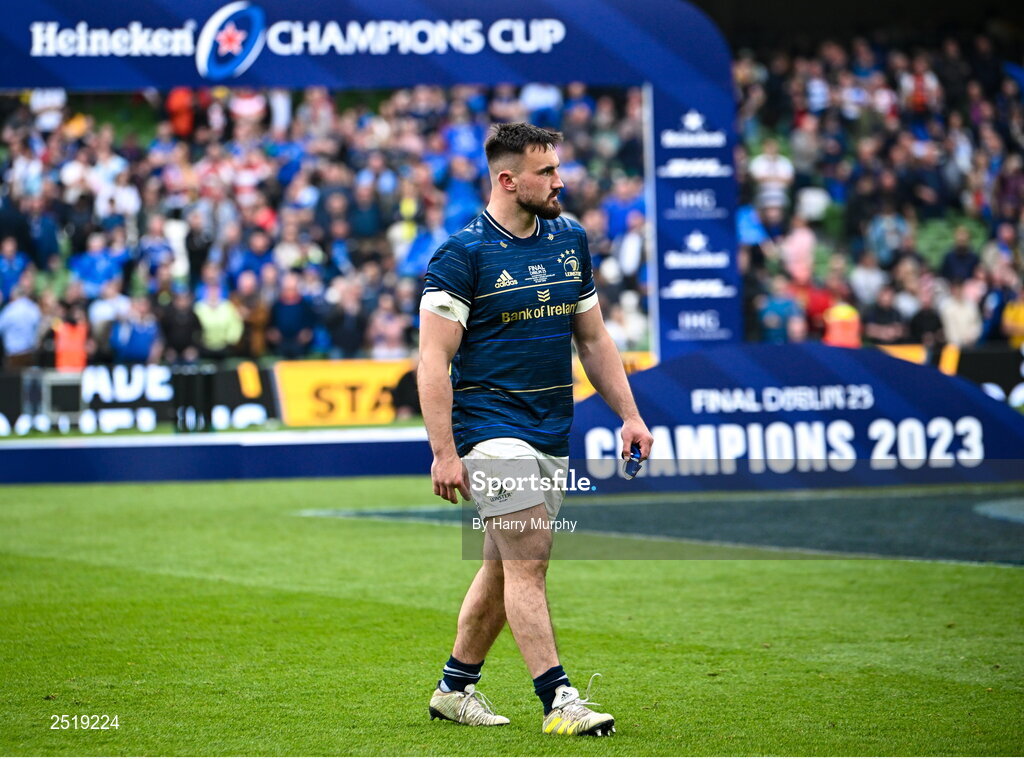 20 May 2023; Rónan Kelleher of Leinster after his side's defeat in the Heineken Champions Cup final match between Leinster and La Rochelle at the Aviva Stadium in Dublin. Photo by Harry Murphy/Sportsfile