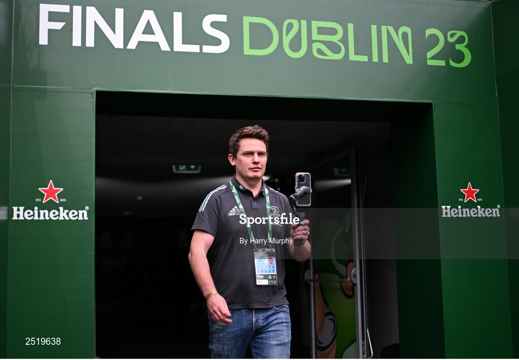 20 May 2023; Leinster digital media manager Paul Cahill arrives before the Heineken Champions Cup final match between Leinster and La Rochelle at the Aviva Stadium in Dublin. Photo by Harry Murphy/Sportsfile