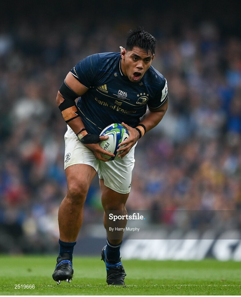 20 May 2023; Michael Ala'alatoa of Leinster during the Heineken Champions Cup final match between Leinster and La Rochelle at the Aviva Stadium in Dublin. Photo by Harry Murphy/Sportsfile